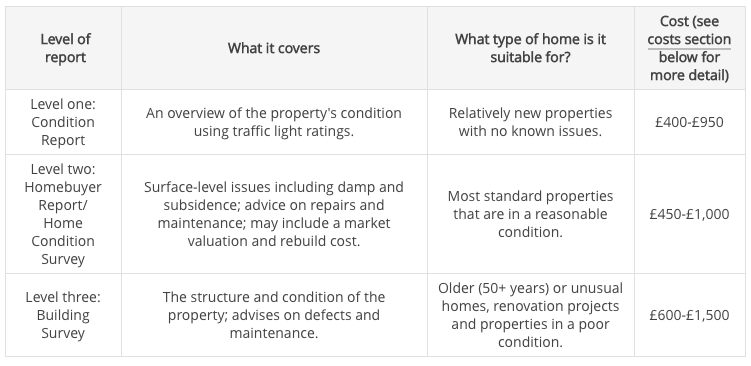 Инспекторы Rics предлагают три «уровня» оценки: Отчет о состоянии (первый уровень), Отчет для покупателя жилья (второй уровень) и Обследование зданий (третий уровень).